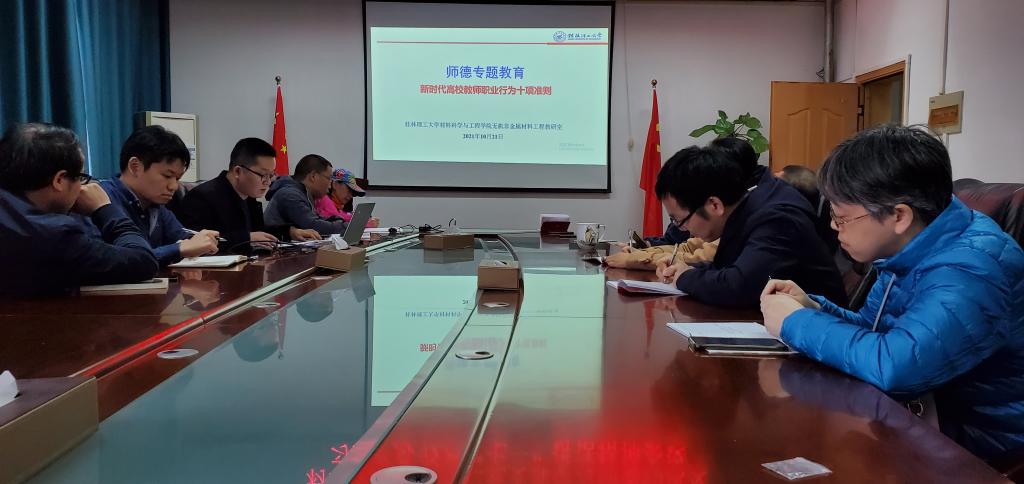 10月21日下午,学院教工第二党支部在2308会议室召开师德师风教育专题学习会。专题会由支部书记王吉林同志主持。支部党员及无机非金属材料工程专业教研室非党员教师参加。