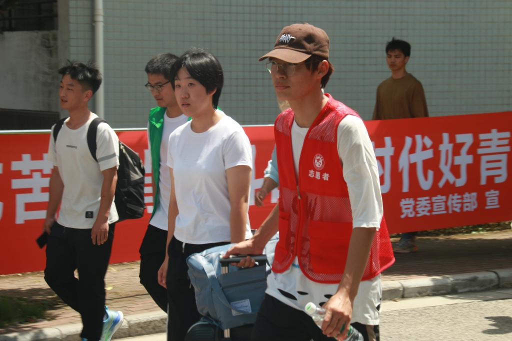 志愿者为新生搬运行李、指引报到