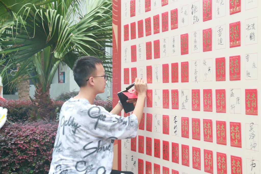 新生在红包墙抽取纪念礼物、留下签名