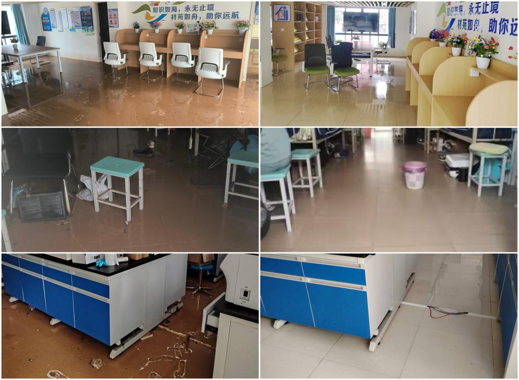 材料科学与工程学院在此次抗洪抢险工作中牢固树立以人民为中心的发展理念,把抗洪抢险和灾后恢复工作做得更实、更细、更有针对性,确保师生生命安全,将师生财产损失降到最低。目前,受灾宿舍和实验室已全部清理消杀完毕,师生工作、学习和生活恢复了以往的生机与活力。