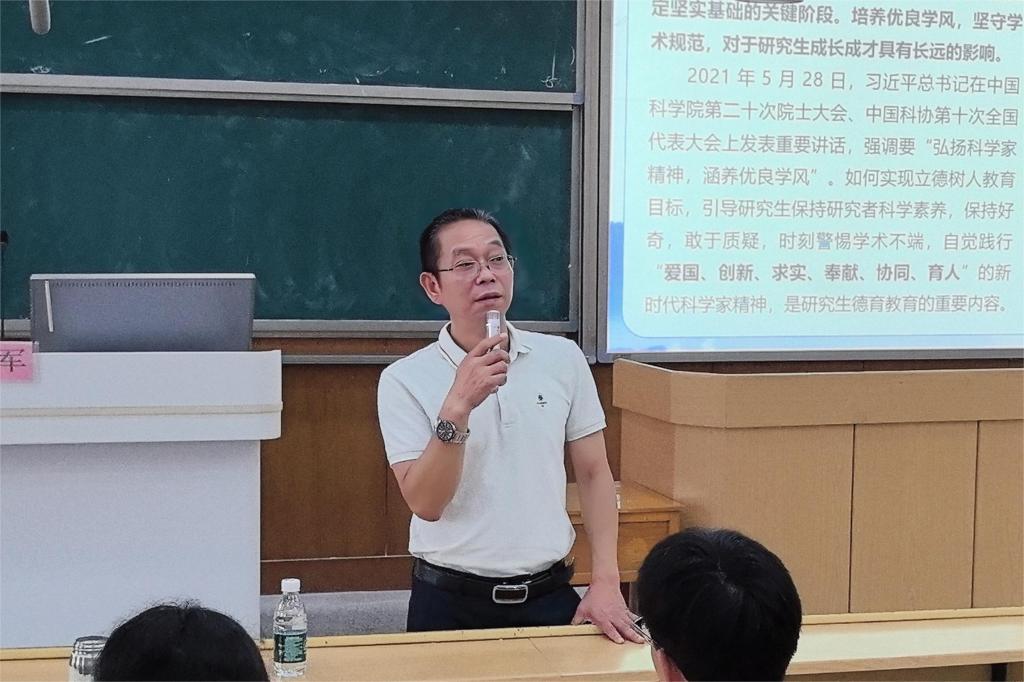 讲求科研诚信,遵守学术规范,是关乎国家创新发展的重大问题,也是社会文明程度的重要体现。为进一步贯彻落实立德树人根本任务,大力弘扬诚信文化,切实提升师生诚信品质、自律意识和社会责任感。2024年6月27日,kaiyun体育官方网站入口登录党委书记梁军同志为学院研究生讲授题为《研究生科研诚信和学术规范素养培育》的专题思政课。