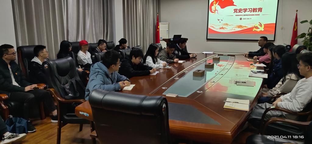 4月11日,kaiyun体育官方网站入口登录本科生第三党支部在屏风校区2308会议室开展了党史学习教育主题党课,支部全体党员和积极分子参加了主题党课,党课由党支部书记单江涛主讲。