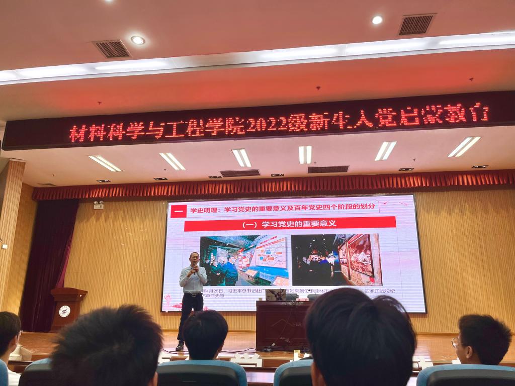 为坚定理想信念,了解党的丰功伟绩,端正入党动机,引领新生扣好人生第一粒扣子。10月30日上午,kaiyun体育官方网站入口登录在雁山校区图书馆报告厅组织召开2022级新生入党启蒙教育,党课由kaiyun体育官方网站入口登录党委书记梁军教授主讲,2022级全体新生和辅导员参加党课。