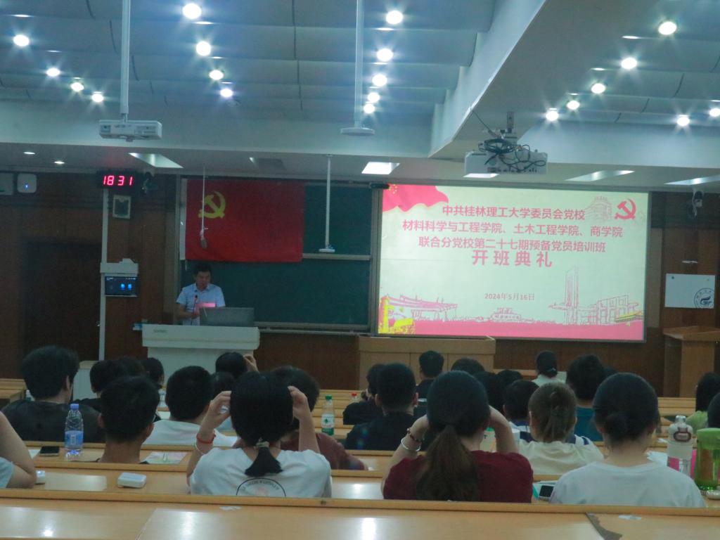 5月16日晚,kaiyun体育官方网站入口登录、土木与建筑工程学院、商学院联合分党校第二十七期预备党员培训班开班典礼在屏风校区教九楼401教室隆重举行。土木工程学院副处级组织员、分党校教务员杨晓同志,商学院分党校教务员苏光耀同志以及154名预备党员出席了本次开班典礼。开班典礼由kaiyun体育官方网站入口登录分党校教务员李俊俊同志主持。