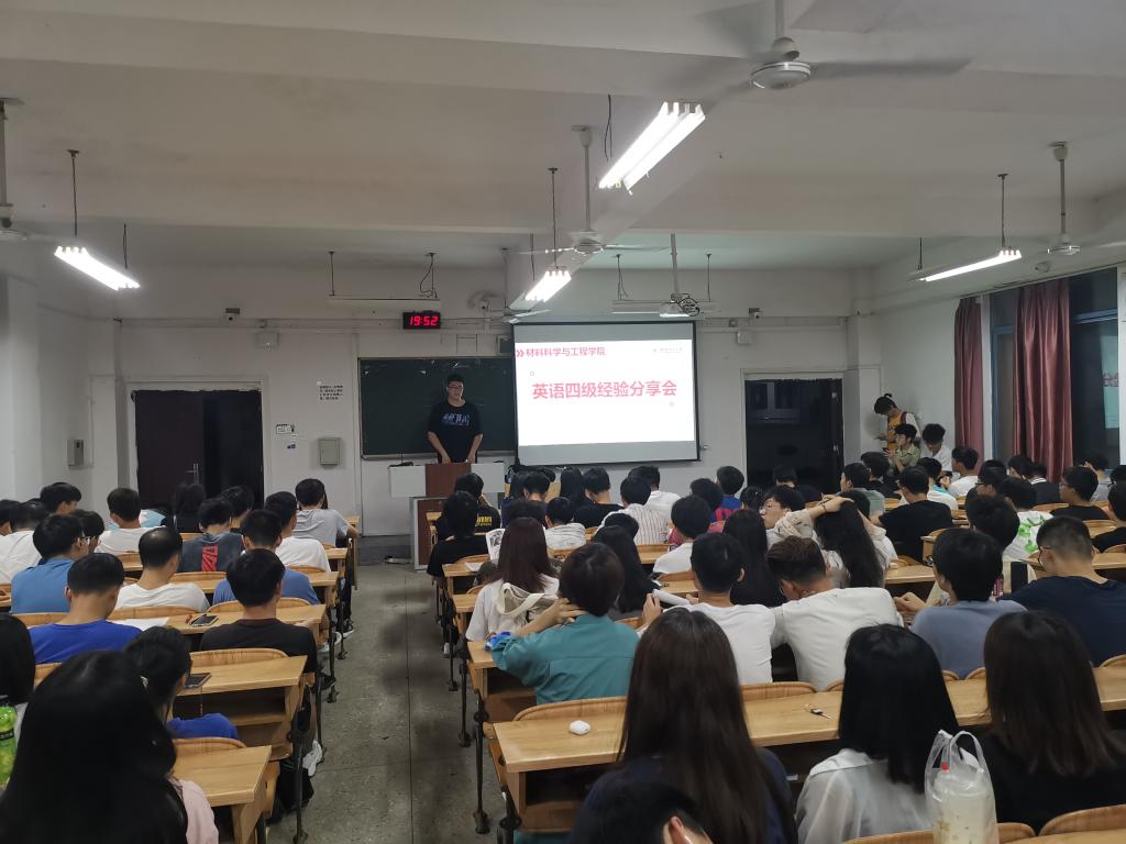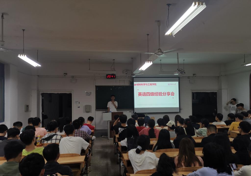 为提高同学们英语学习效率,扩大英语知识储备,助力材料学子通过四六级考试,kaiyun体育官网于5月23日晚在雁山校区05301教室举办2021年春季学期英语四六级分享会。本次分享会由kaiyun体育官网2020级辅导员曲怀仁老师主持,共由四位学生代表进行四级经验分享交流,kaiyun体育官网全体学生参加本次活动。