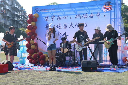 鲜花、气球和背景墙打造的梦幻现场,再搭配乐队的倾情演奏,让材料学子们一进入操场就惊叹于这特殊而又唯美的场景。在乐队和kaiyun体育官网两位校级“十佳歌手”的助力下,现场气氛高涨。摄影师团队、老师和同学们入场完毕并整理好队形后,在李轶帆同学的领唱下,全体师生一起合唱《唱支山歌给党听》和《星辰大海》,唱响红色主旋律,坚定信念跟党走。