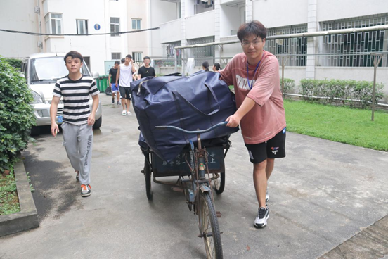 此次2018级女生宿舍调整主要由4号公寓楼搬至1号公寓楼。搬迁工作中,同学之间充分发挥了互帮互助、团结协作的可贵精神。炎炎夏日,时而伴随阵阵暴雨,为了方便同学们更快速的完成搬迁,避免行李被雨淋湿,学院专门租赁电动三轮车助力搬迁。同学们使用三轮车你推我骑,轮流搬运;虽然人流量较大,需要搬运的物品很多,但整个搬迁过程秩序井然。