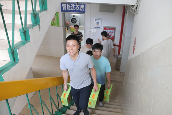 学院领导和老师们来到搬迁现场为同学们加油打气,细致地了解了同学们对新寝室的适应情况,并准备了数箱解暑饮品,亲自送到宿舍,让学生们感到了学院领导老师亲切的关怀和暖心的照顾。