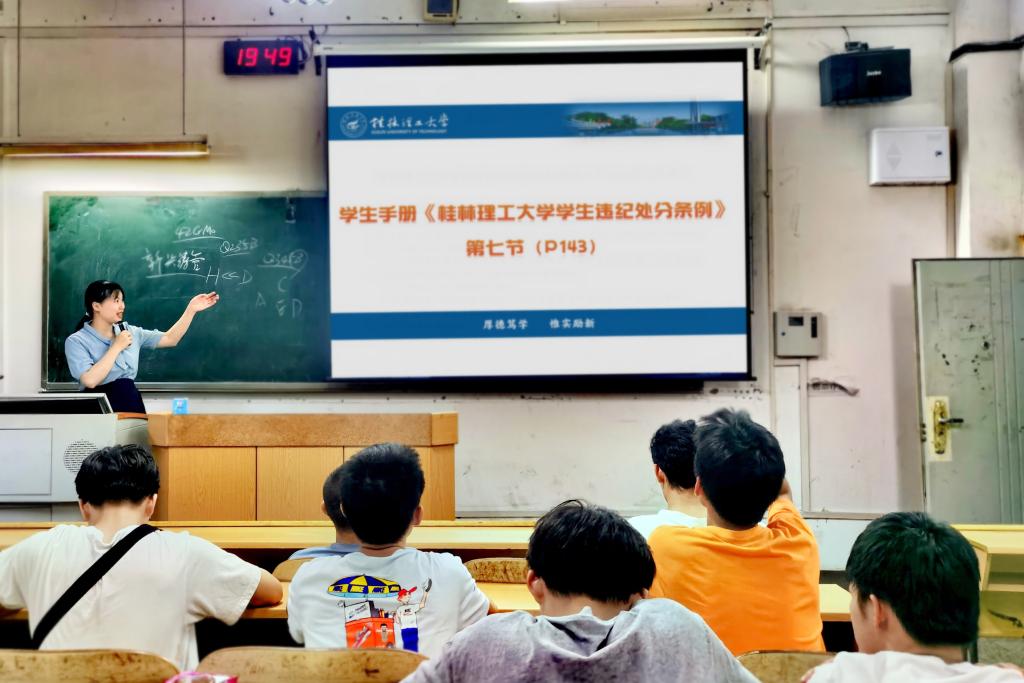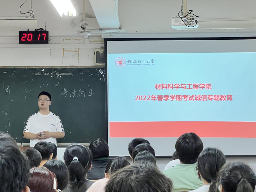 会议主要包括三个方面的内容:一是解读《高等学校学生行为准则》中对高校学生诚实守信的规范和要求,引导学生树立诚信意识,形成良好道德素养。二是从个人信誉、同窗情谊、心理健康、自身发展及学校纪律等方面向学生分析考试作弊可能带来的严重后果,倡导学生诚信考试。三是通报以往考试作弊典型案例,警醒学生引以为戒,切勿触碰考试有关的法律法规、规章制度红线,做文明桂工人。