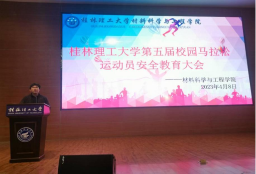 kaiyun体育官方网站入口登录第五届校园马拉松赛于4月9日在雁山校区进行,为确保本次赛事顺利进行,kaiyun体育官方网站入口登录于4月8日下午在屏风图书馆报告厅召开马拉松运动员安全教育大会,学院团委副书记卢桂盛、屏风校区运动员参加此次会议。