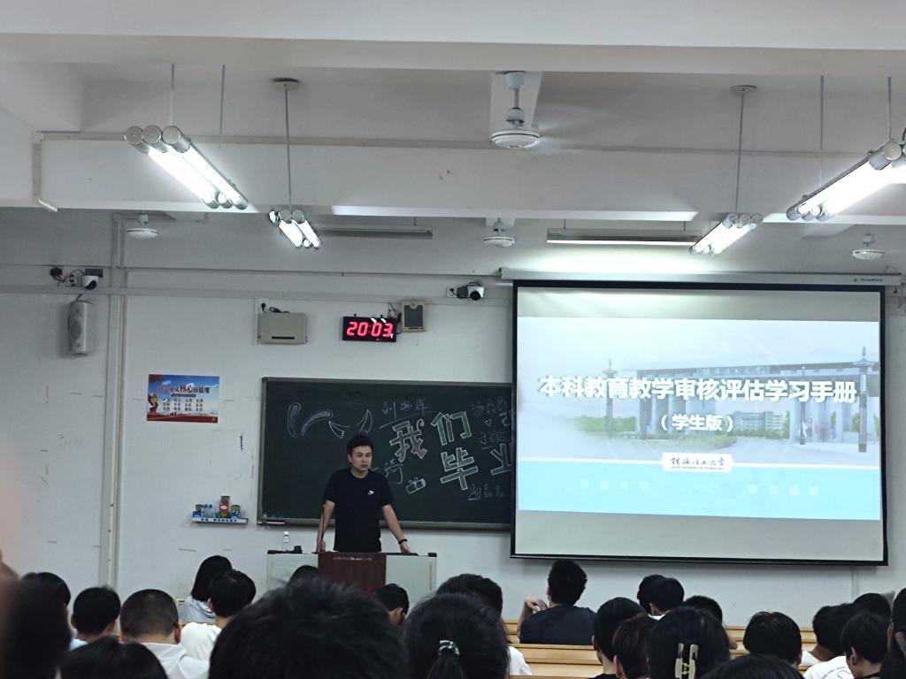 各年级辅导员围绕《本科教育教学审核评估学习手册(第二版)》,分别从学校总体情况、教育教学、教师方面、学生方面、质量监控等方面进行讲解,进一步加深了学生对学校的基本情况和三全育人举措的认识,也加深了对专业学习的理解。各年级辅导员结合学生管理的日常要求,强调同学们要做到增强“主人翁”意识,树立高度的责任感、使命感和荣誉感。在学风建设、文明礼仪方面严以律己,落实到细微处,保持积极向上的精神风貌和浓厚的学习氛围,为迎接评估专家组进校考察作出贡献。