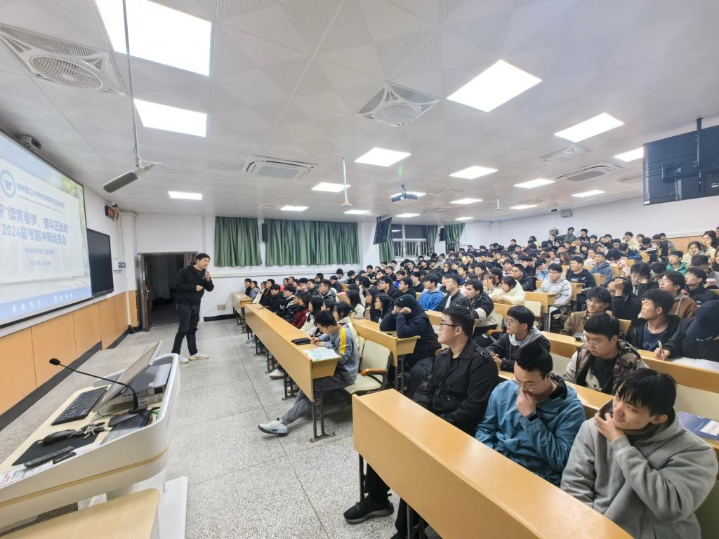 在会议伊始,郝文佳书记代表学院党委向正在积极备考的学子们表达了深切的慰问和鼓励。他指出,考研是人生中的重要阶段,也是提升自身素质和能力的关键时刻。他对考研学子们寄予了殷切的期望,希望他们能够坚定信心、保持耐心、勤奋学习,以优异的成绩为学院争光。随后,郝文佳书记通过自己的个人经历,向在场的学子们传授了宝贵的考研经验。他强调,考研不仅是一场知识的较量,更是一场意志和毅力的考验。在备考过程中,要学会合理规划时间,掌握科学的学习方法,保持积极的心态和良好的生活习惯。他还提醒同学们要注意身体和心理的调节,不要过度紧张,保持健康状态。在会议的最后,郝文佳副书记还为考研学子们提出了一些具体的建议。他指出,在备考过程中,要注重基础知识的掌握,同时也要关注时事动态和学科前沿。他还鼓励同学们要相互学习、相互帮助,形成良好的学习氛围。
