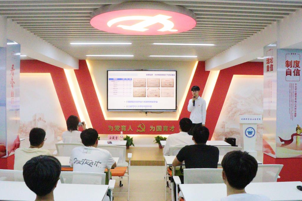 5月16日晚,kaiyun体育官方网站入口登录于屏风校区材苑“一站式”学生社区思政大讲堂顺利开展成“材”宣讲团“砥砺前行 共筑梦想”主题宣讲会。本次活动旨在通过展示学院优秀学生的成长经历,激发广大青年学子的学习热情和社会责任感,营造积极向上的校园文化氛围,进一步深化资助育人成效。学院辅导员桂鑫老师、分享人沈方萍、安俊吉、谢陶靖三位同学以及全体受助学生参与活动。三位来自不同专业的分享人均是国家资助政策的受益者,会上,他们从学科竞赛、文体活动和社会实践三个维度分享了自己的奋斗故事和宝贵经验。