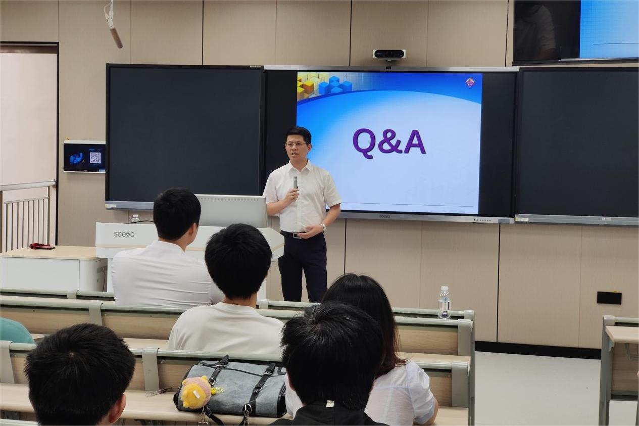 在自由提问环节,莫祖荣解答了同学们的求职疑问,分享了岗位必备的实操技能,建议同学们在职场前多积累尝试,为未来就业打下坚实基础。最后,郝文佳对本次分享会进行了总结,希望同学们抓住规划未来的黄金期,打磨自己,像优秀的校友们一样,努力争取更多的实习就业机会。