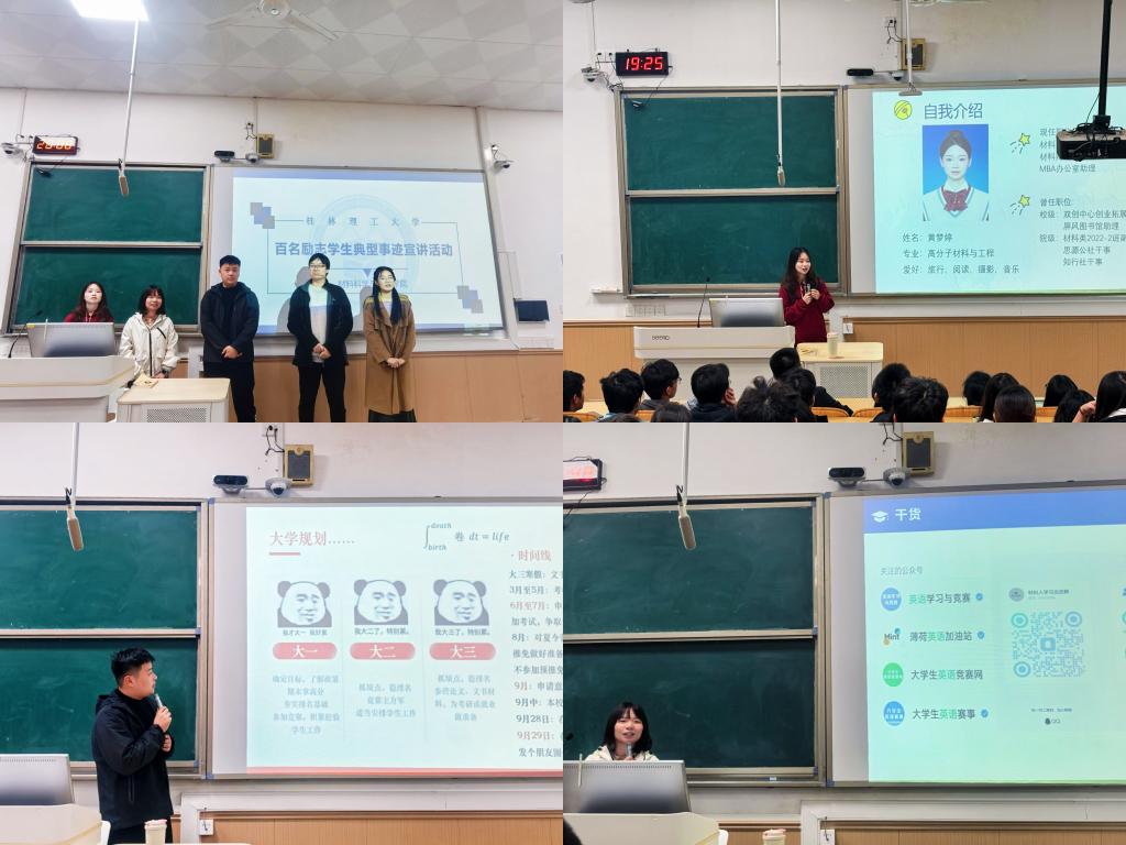 11月24日,kaiyun体育官方网站入口登录于雁山校区07319、04111教室举行了“成‘材’宣讲团”百名励志学生典型事迹宣讲会。本次活动以分享励志学生群体的成长历程为核心,旨在激发广大学子积极向上的精神风貌,彰显资助育人工作的显著成效。宣讲会由学生资助工作专职辅导员董子胜主持,国家励志奖学金获得者周利燊等六位同学、广西壮族自治区人民政府奖学金获得者苟海玲等三位同学进行了精彩宣讲,全体2024级本科生积极参与了此次活动。