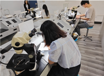 赛前由宝石专业三名骨干专业老师进行集训辅导。比赛本着“公开、公平、公正”的宗旨,参照国家标准GB/T 16552-2017《珠宝玉石名称》、GB/T16553-2017《珠宝玉石 鉴定》、《国家职业标准-贵金属首饰与宝玉石检测员(2019版)》以及全国职业院校技能大赛——珠宝玉石鉴定赛项竞赛要求,制订竞赛标准,采用实操竞赛的方式进行。经过两个小时的实战较量,三名选手来自宝石20-1班的赵栩锐、宝石20-3班的蒋雯旭、以及宝石21-1的孟晨妤脱颖而出,获得比赛前三名,并将代表学校与兄弟院校学子同台竞技。
